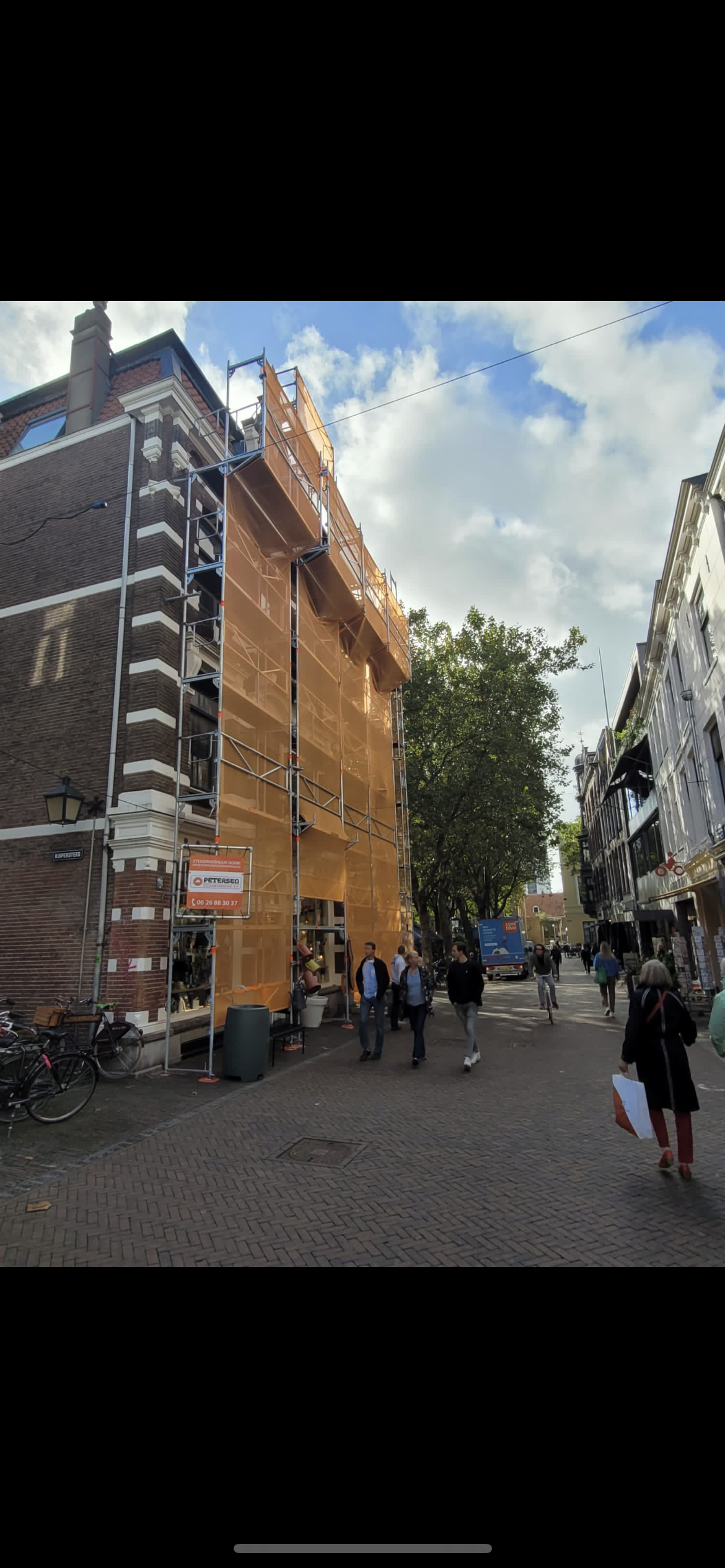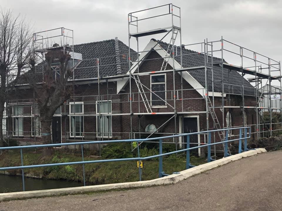 Een Blitz renovatiesteiger van Layher huren inclusief opbouw, anker gaten dichten en afvoeren, demontage en transport.